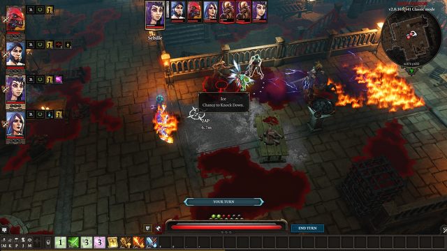 W pozostałych elementach gry trudno dopatrzeć się większych zmian względem „jedynki”. Począwszy od tworzenia postaci, przez przegląd podstawowych okien interfejsu, po prowadzenie walki – kto grał w pierwszy Grzech pierworodny, ten w mig się w tym wszystkim połapie. Warto jednak przyjrzeć się systemowi toczenia starć, bo pojawiło się tu trochę komplikacji. Po pierwsze, wspomniana już „pionizacja” konstrukcji lokacji objęła również areny – wspinanie się na platformy czy wyższe kondygnacje daje solidne premie do zasięgu i siły ataków dystansowych. Po drugie, na podłożu występuje więcej aktywnych substancji i materiałów, które mogą reagować z żywiołami, np. kałuż i plam krwi (to chyba w dużej mierze przez te ostatnie Divinity: Original Sin II wydaje się tak mroczną grą).