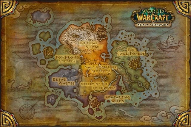 Początkowe plany zakładające istnienie pięciu lokacji na kontynencie Pandarii uległy zmianie i w tej chwili jest ich już siedem. Nowymi obszarami są Krasarang Wilds oraz Dread Wastes. Głównym powodem, dla którego Blizzard zdecydował się na ich wydzielenie z dotychczasowych terenów, jest chęć zapewnienia graczom większej swobody przy zdobywaniu poziomów oraz to, by granie kolejną postacią nie było nudne właśnie dzięki odwiedzaniu nowych stref. Krasarang Wilds będzie istotnym miejscem w aktualizacji 5.1, bowiem to właśnie tutaj wylądują floty Hordy i Przymierza, rozpoczynając tym samym kolejny rozdział dodatku Mists of Pandaria. Warto podkreślić także bardzo zaawansowany postęp prac nad lokacjami w grze: Kun-Lai Summit, Jade Forest, Krasarang Wilds oraz Valley of the Four Winds są już gotowe, a Townlong Steppes i Vale of Eternal Blossoms niemal zostały ukończone.