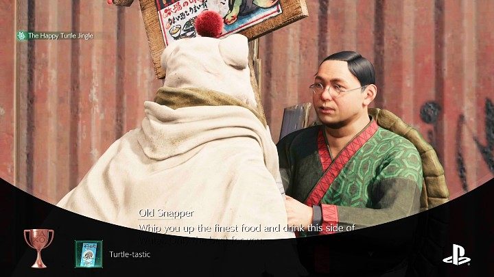 - Komentarz: trofeum związane z misją poboczną The Happy Envoy, w której należy zebrać 6 ulotek Happy Turtle dla mężczyzny przebranego za żółwia (Old Snaper).