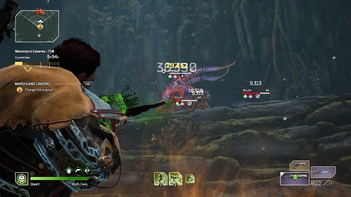 Po rozpoczęciu Ekspedycji Bagniste groty (Marshland Caverns) musicie przebić się przez obszerną jaskinię. Najpierw przywita Was kilka zwykłych stworów w towarzystwie Alpha Perforo, a następnie na arenie pojawią się dwie Elitarne Brood Mother w towarzystwie wielu Alpha Perforo. Jeśli możecie zlikwidować Alpha Perforo kilkoma strzałami, warto zrobić to w pierwszej kolejności, a następnie skupić całą siłę ognia na Elitarnych jednostkach.