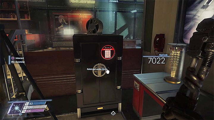 Poszukiwane obiekty znajdują się w pokazanym na obrazku sejfie Kelstrupa. Do jego otwarcia użyj kodu otrzymanego wcześniej od Alexa Yu (jest on losowo generowany). W sejfie odnajdziesz paczkę neuromodów ORAZ projekt neuromodu, dzięki któremu będziesz mógł polegać na craftingu do wytwarzania kolejnych neuromodów.