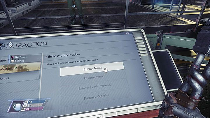 Drugi wariant zakłada przeprowadzenie planowanej procedury ekstrakcji, która zakończy się śmiercią Aarona Ingrama. W tym celu wybierz drugą zakładkę z menu komputera i wybieraj z niej kolejne pozycje gdy będą one stawały się dostępne. Po tym jak Mim rozmnoży się wybierz opcję pozyskania egzotycznego materiału. Mimy z klatki zostaną automatycznie przerobione na bardzo wartościowe egzotyczne materiały (zabierz je z pojemnika), które przydadzą się w craftingu.