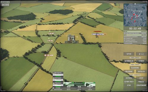 Po zajęciu miasta będziesz musiał przez 20 minut odpierać wrogie ataki (głównie czołgi Leopard, pojazdy z rakietami przeciwpancernymi Marder, kilka Cheftainów, a w późniejszym okresie parę Abramsów). Te będą prowadzone głównie z północy [7] i wezmą w nich udział głównie pojazdy wyposażone w rakiety przeciwpancerne, zwiadowcy i czołgi Leopard. Ustaw swoje czołgi T-80 przy północnej bazie operacyjnej i odpieraj oddziały namierzone przez zwiadowców (obrazek poniżej). W pierwszym okresie szybko wyeliminuj jednostki artyleryjskie przeciwnika przy pomocy śmigłowców lub własnej artylerii. Dokupuj również nowe czołgi i śmigłowce i wspomagaj obrońców miasta.
