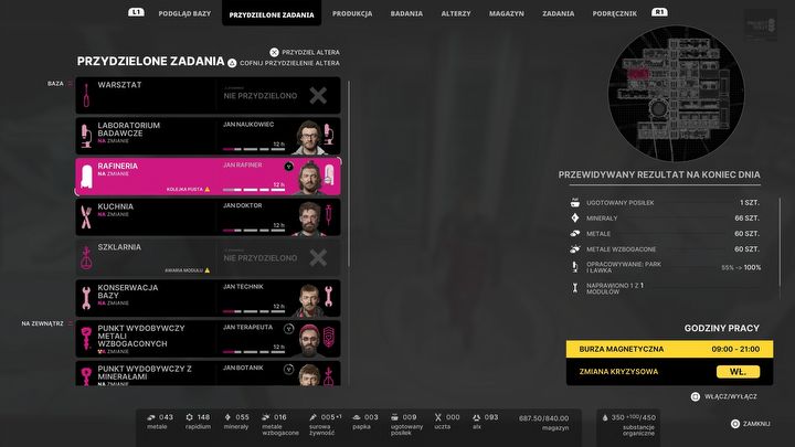 Alterzy stworzeni na początku, szczególnie Technik i Naukowiec, są niezbędni do progresu, ale resztę dobieramy już sobie swobodnie, kierując się tym, kto wydaje się najciekawszy i najbardziej przydatny. Każdy alter ma bowiem premię do efektywności pracy na konkretnym stanowisku – Rafiner w rafinerii, Botanik w szklarni, Doktor w... kuchni – a także powiązany ze sobą łańcuch miniquestów i/lub nowe aktywności w bazie. Nie ma co ukrywać, alterów zbiera się tu jak pokemony, choć przed „złapaniem ich wszystkich” powstrzymują nas ograniczone tzw. miejsca kubitowe naszego komputera kwantowego. Udało mi się jednocześnie odblokować sześciu, zatem osoby chętne poznać wszystkich powinny przygotować się na przynajmniej dwa podejścia.