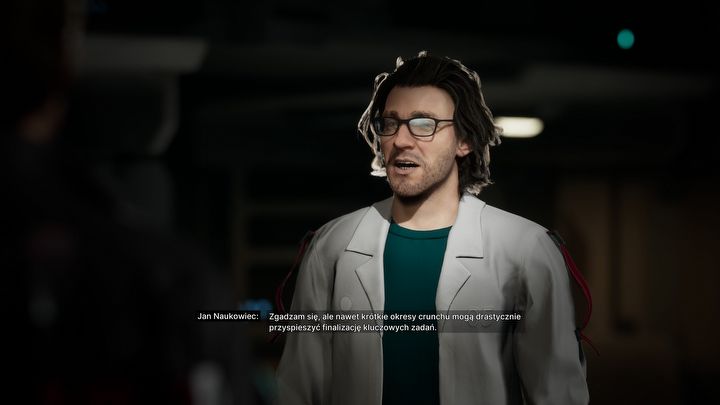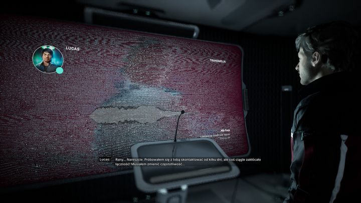 Po pierwsze – forma. Nie oczekuję poziomu realizacyjnego dialogów z Cyberpunka 2077, ale tutaj dostajemy nieruchomy kadr na naszego rozmówcę, który czasem skinie głową lub machnie ręką i na tym kończą się animacyjne fajerwerki. Mimice twarzy nie sposób niczego zarzucić, a aktor głosowy naprawdę daje z siebie wszystko – o nim jeszcze trochę opowiem – jednak tkwiący w miejscu jak żona Lota Janowie wyglądają po prostu nienaturalnie. A rozmowa z Janami to i tak bardziej ekscytująca z opcji, bo długie minuty spędzamy też na wideorozmowach z Ziemią, podczas których naszego Jana widzimy głównie od tyłu, zaś dwie trzecie wyświetlacza zajmuje... gigantyczny, śnieżący ekran z małą ikonką naszego rozmówcy w rogu. Naprawdę mam nadzieję, że to był bug w mojej wersji gry i że reszta graczy zobaczy tu normalny obraz.