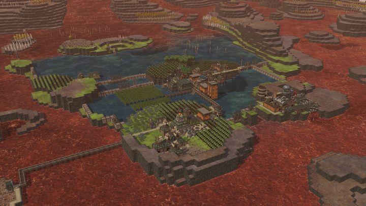 I faktycznie, wspomniana „bobrowość” osiągnęła obecnie dość wysoki poziom. Miłośnicy survival builderów raczej bez trudu się tu odnajdą, bo ogólne zasady pozostały niezmienione – musimy zapewnić mieszkańcom pożywienie, wodę i schronienie oraz przygotować ich na trudne czasy. Bóbr tkwi jednak w szczegółach, bo nie mamy tu do czynienia z klasycznym strachem przed zimą i wyścigiem z czasem, by zgromadzić odpowiednio dużo opału i pożywienia przed pierwszymi przymrozkami. Nie musimy też wznosić murów i wartowni, by przetrwać szturm żądnych krwi wrogów. Tu funkcję srogiej zimy pełni susza, a cała mechanika kręci się wokół wody – jej nadmiaru, braku, a po ostatniej aktualizacji także czystości. Największym wrogiem jesteśmy z kolei my sami, nierozważnie budujący tamy, groble, śluzy i inne konstrukcje hydrotechniczne.
