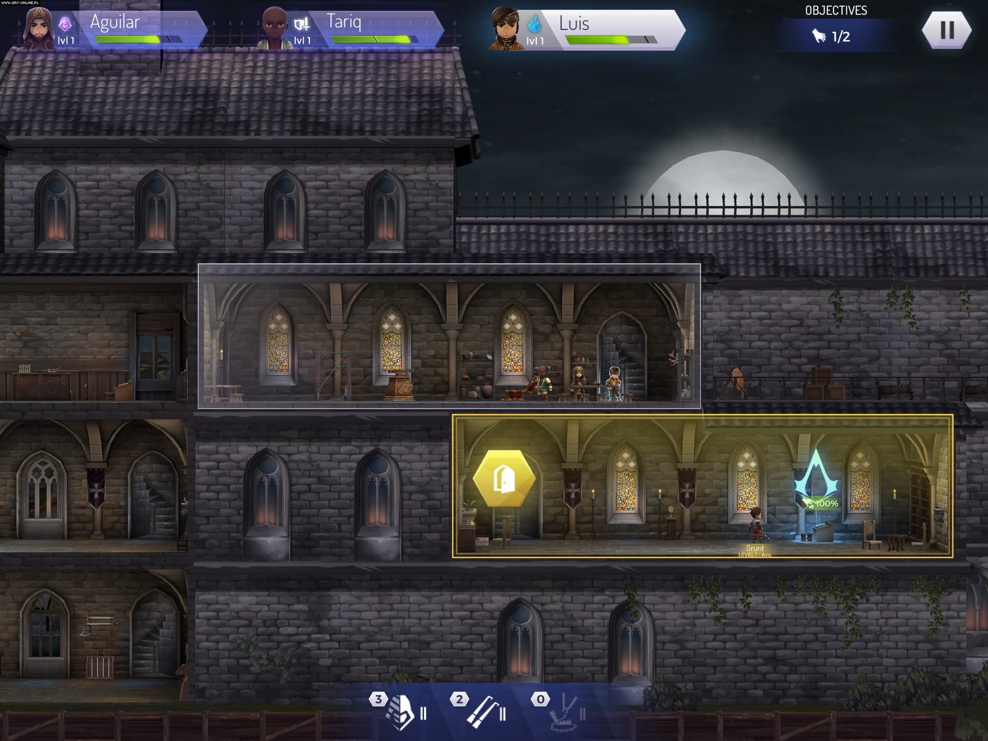 Opisywana gra nie stawia na akcję, która na ekranie dotykowym sprawdza się tylko w przemyślanej i uproszczonej formule. Trzon „Rebelii” stanowią turowe misje, w trakcie których dowodzimy ekipą złożoną z trzech asasynów. Każdy z nich posiada inne umiejętności – jeden lepiej się wspina i po cichu zabija wrogów (Aguilar), drugi świetnie radzi sobie w walce wręcz (Tariq), trzeci zaś po mistrzowsku unika pułapek i niepostrzeżenie przemyka się w cieniu (Luis). Wymieniłem imiona trzech pierwszych bohaterów, ale łącznie jest ich 43 do zebrania (w tym 20 zupełnie nowych, stworzonych na potrzebny Rebelliona), więc w zależności od misji skład zespołu może się zmieniać.
