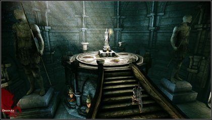 W tym momencie zaczyna się właściwa zabawa. Znając charakter artefaktu, wiemy, że jest to przedmiot uznawany za święty, więc samo przebywanie w jego pobliżu jest wielkim wyróżnieniem. Doceniają to szczególnie dwie postacie z drużyny – bardzo religijne Wynne oraz Leliana – które są zachwycone tym, co je spotkało. Nie na długo – zapał studzi cyniczna wypowiedź Morrigan oraz decyzja gracza. Postanawia on zabrać artefakt i tym samym zbezcześcić świątynię. Wspomniane kobiety nie mogą na to pozwolić – postanawiają walczyć z Morrigan i bohaterem. Wywiązuje się walka, do której przyłącza się strażnik świątyni. Nie są oni jednak w stanie pokonać gracza i wkrótce padają martwi. W ten oto sposób pozbyliśmy się połowy drużyny. Czy było warto?
