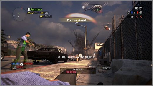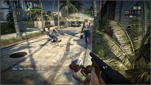 Następnie przemieszczamy się na obszar o wiele większy od poprzedniego – trafiamy bowiem na ulice meksykańskiego miasta, w którym policja urządza polowanie na przestępców. Na drogach pojawia się sporo funkcjonariuszy, my zaś musimy jakimś cudem przedrzeć się wzdłuż szosy do usytuowanego nieopodal budynku. Na miejsce akcji podjeżdżamy samochodem, co daje sposobność do zaliczenia kilku błyskawicznych fragów. Przymusowa wysiadka z wozu następuje w solidnym ostrzale z karabinów maszynowych będących na wyposażeniu tutejszej policji. Chowamy się za porozrzucanymi na trasie samochodami i prowadzimy dynamiczną wymianę ognia ze stróżami prawa. Trup ściele się gęsto, choć w wielu przypadkach udaje się uratować rannych szybką pomocą lekarską, za którą również przyznawany jest spory zastrzyk punktów doświadczenia. W sytuacji, gdy zbyt długo czekamy na interwencję kompanów, możemy popełnić samobójstwo – choć to mało humanitarne, bardzo dobrze rozwiązuje problem oczekiwania na kolegów. O systemie respawnu nie można powiedzieć złego słowa – do walki wracamy w punktach niezagrożonych nagłym ostrzałem wroga i jak najbliżej reszty naszych kompanów. Gra premiuje także pracę w duetach – za każdą sekundę wspólnej akcji otrzymujemy specjalne punkty, które, według zapewnień, dadzą nam dodatkowe bonusy i wsparcie.