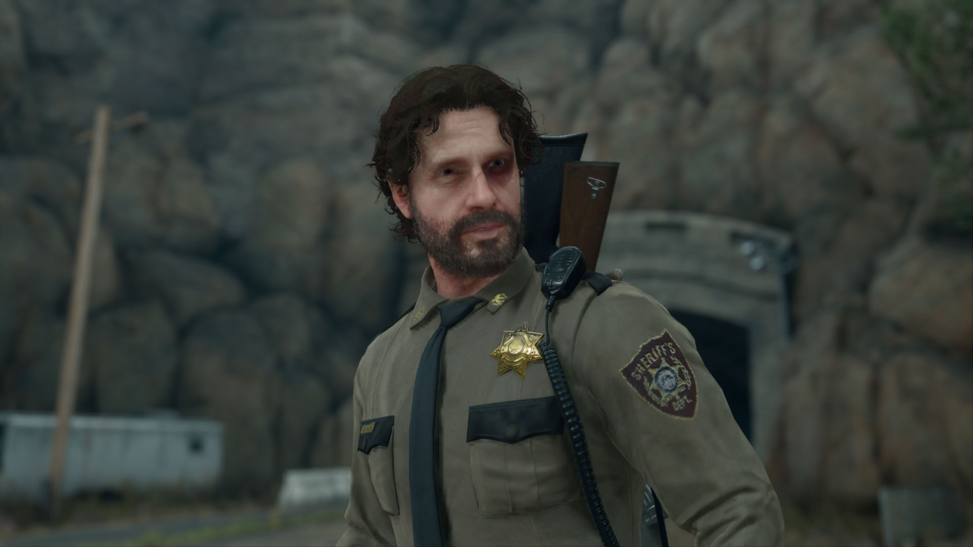 Mod przerabia model głównego bohatera zastępując go postacią Ricka Grimesa z serialu The Walking Dead.