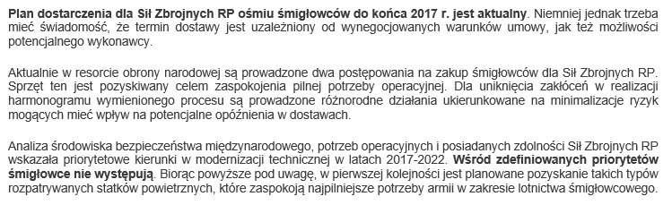 A potem okazuje się, że wśród zdefiniowanych priorytetów nie ma śmigłowców.
