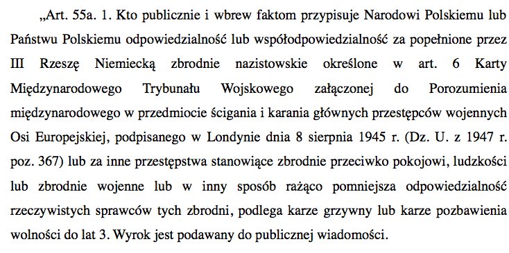 Przepisy ustawy o IPN nie mają źródła w koncepcjach powstałych w Polsce, lecz oparte są o wytyczne z decyzji ramowej Rady UE 2008/913. Polska w obliczu gigantycznej skali kłamstw umniejszającej winę Niemców stworzyła przepis w oparciu o tę regulację.