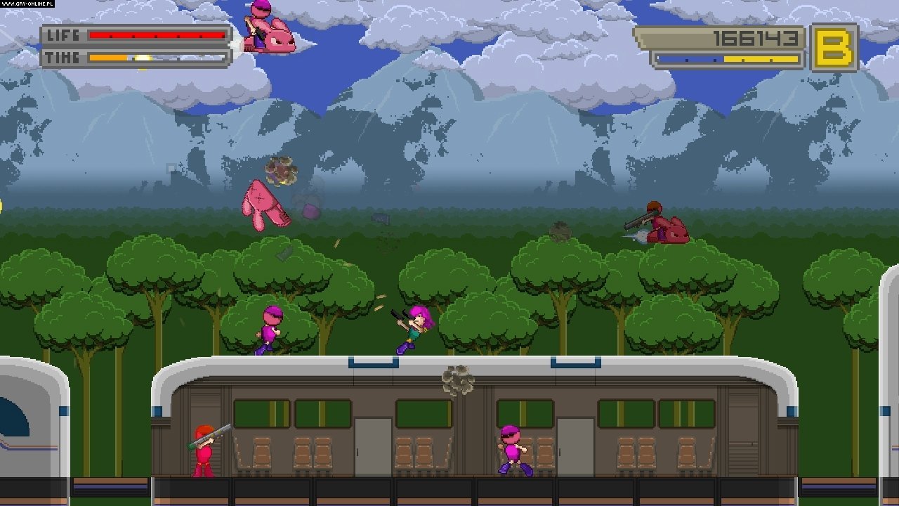 Bleed to opracowana przez zespół Bootdisk Revolution platformowa strzelanka rozgrywana w dwóch wymiarach. Kierujemy uzbrojoną po zęby bohaterką, której zadaniem jest wycięcie w pień wszystkich wrogów na każdym z poziomów.