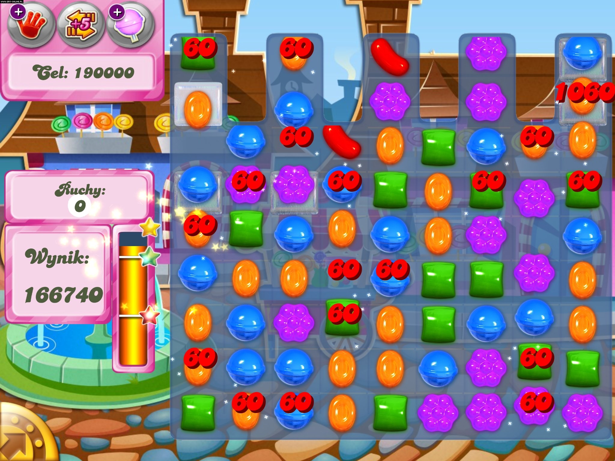 - Zróżnicowane zadania – od zwykłego nabijania punktów, przez zbieranie określonej liczby danego rodzaju cukierków, po niszczenie galaretki.