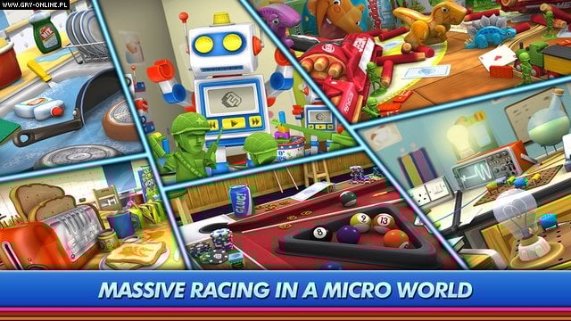 Micro Machines na platformę AND i iOS to zręcznościowa gra wyścigowa, będąca mobilnym rebootem kultowej serii, bazującej na licencji znanej linii zabawek firmy Hasbro, która swe największe triumfy święciła pod koniec lat 90. ubiegłego wieku. Nowa wersja gry to efekt współpracy twórców oryginału z brytyjskiego studia Codemasters z będącą częścią koncernu Electronic Arts firmą wydawniczą Chilingo. Produkcja ukazała się w popularnym na urządzeniach mobilnych modelu free-to-play z mikropłatnościami.