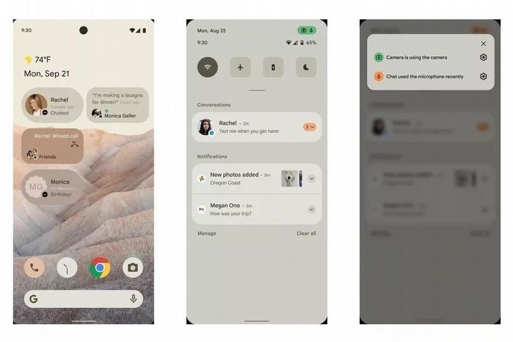 Zmiany wizualne to jednak nie wszystko, bowiem obrazki prezentują też parę nowości, które trafią do kolejnej wersji systemu. Mamy tu na przykład wskaźnik prywatności, który informuje użytkownika o tym, jakie aplikacje korzystają z mikrofonu czy kamery. Funkcja przypomina rozwiązanie znane z iOS i pozwala też szybko zmienić niektóre ustawienia.