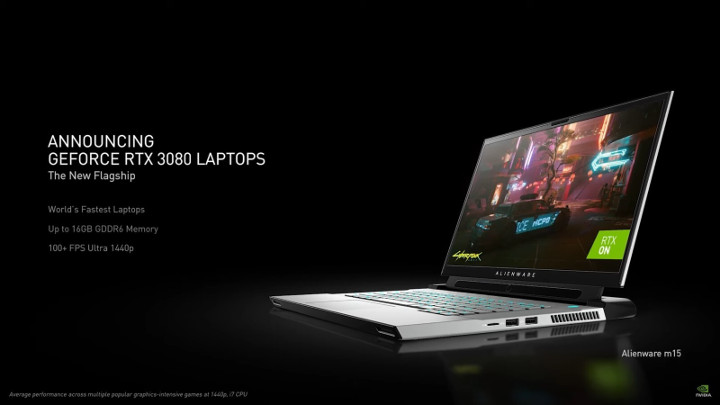 Wśród nowości znalazły się także oczekiwane mobilne układy z rodziny Ampere. Topowy GeForce RTX 3080 dla laptopów wyposażono w 6144 rdzenie CUDA oraz 8 lub 16 GB pamięci VRAM GDDR6 (256-bitowa szyna). TGP modelu wyniesie od 80 do 150 W (w zależności od wersji). W porównaniu do desktopowego GPU jest więc spora różnica. Mobilny RTX 3070 otrzymał 5120 rdzeni CUDA i 8 GB pamięci VRAM GDDR6 (256-bitowa szyna), a jego zapotrzebowanie na moc jest nieco niższe niż flagowca. Najniżej pozycjonowany RTX 3060 posiada 3840 rdzeni CUDA, które sparowano z 6 GB pamięci VRAM GDDR6 (192-bitowa szyna). Pobór mocy w tym wypadku wyniesie od 60 do 115 W. Laptopy wyposażone w mobilne karty Ampere powinny być dostępne od 26 stycznia bieżącego roku.