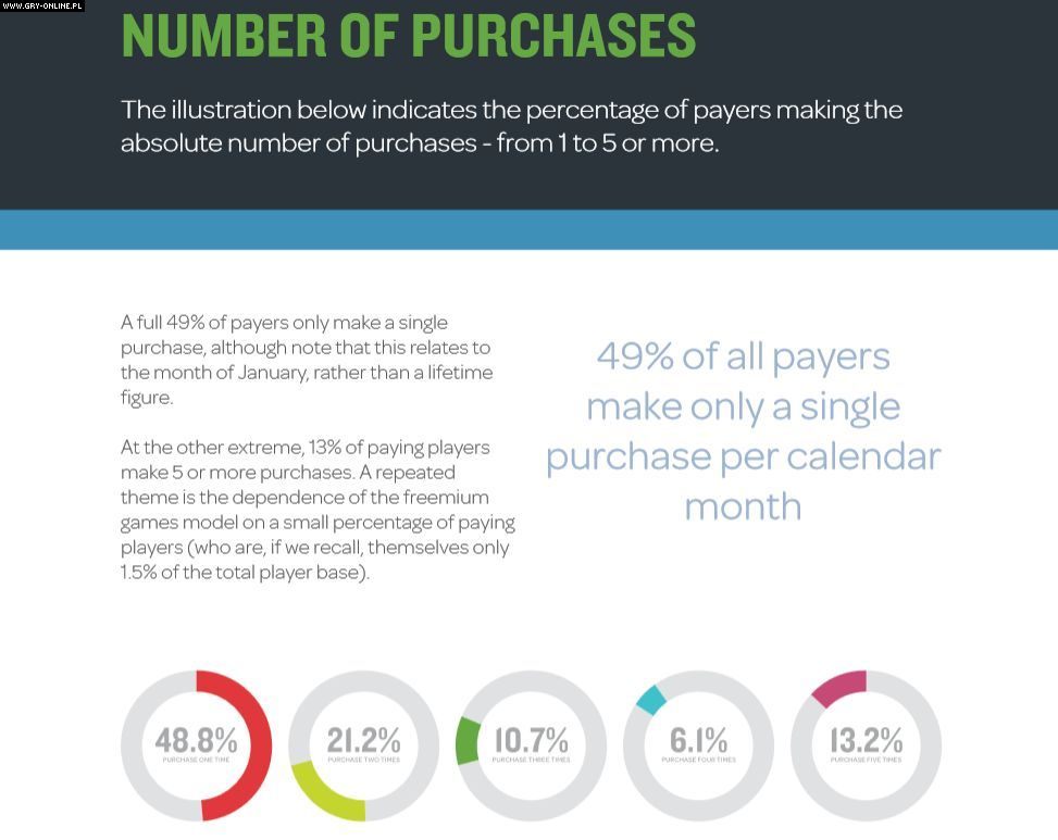 Okazuje się, że ok. 53% aktywnych graczy uruchomiło jakąś grę po raz pierwszy. Jak zatem wygląda sytuacja w ich przypadku? Zakupu z reguły dokonują w ciągu 24 godzin od początkowego uruchomienia danego tytułu, a między pierwszą a drugą transakcją mija z reguły godzina i 40 minut. Po więcej szczegółów zapraszamy na oficjalną stronę internetową, gdzie po wypełnieniu podstawowych danych można pobrać pełny raport na dysk twardy komputera.