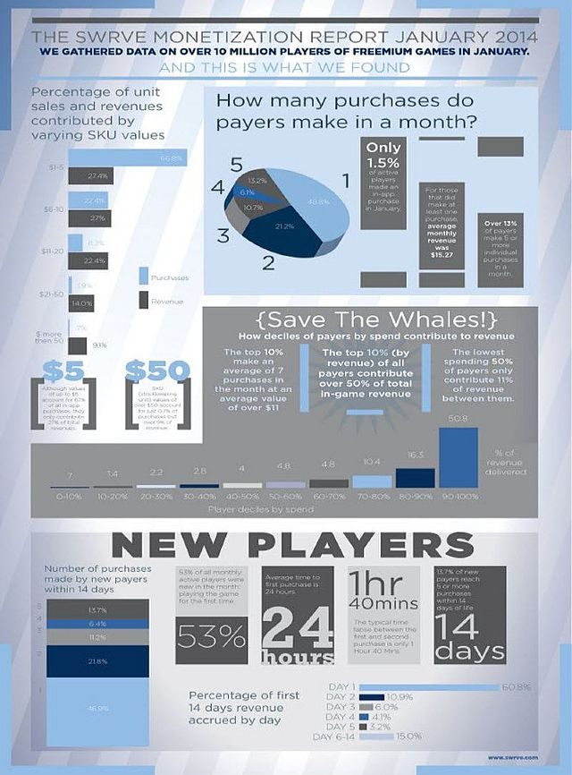 Z badania firmy Swrve wynika, że 50% przychodów uzyskanych przez gry free to play wygenerowało zaledwie 0,15% najaktywniejszych użytkowników urządzeń mobilnych. Zdecydowana większość posiadaczy smartfonów i innych platform przenośnych preferuje darmową rozrywkę.