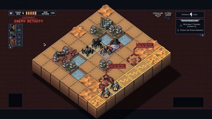 Jak to działa? Przeciwnicy sygnalizują miejsca, które zostaną zaatakowane i na mapie pojawiają się przypisane do każdego z wrogów strzałki, wskazujące konkretne pole. Następnie gracz otrzymuje szansę zatrzymania ataków nim do nich dojdzie, dzięki czemu możliwe jest np. powstrzymanie obcych przed zniszczeniem kluczowych dla misji lokalizacji, albo też odsunięcie naszej maszyny w bezpieczne miejsce. Dodatkowo każda z map posiada charakterystyczną dla siebie mechanikę, uzależnioną od danego regionu i kontynentu. Dla przykładu, w niektórych miejscach na pustyni całe obszary mogą ulegać zniszczeniu w wyniku trzęsień ziemi i lotnych piasków, co możemy wykorzystać planując swoją strategię na daną potyczkę.