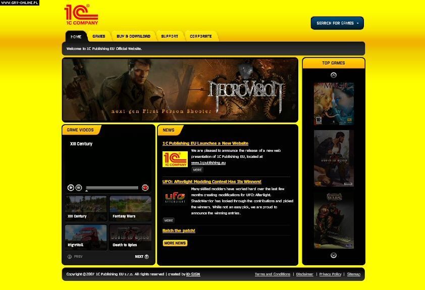 Jako najciekawsze aspekty uruchomionego dzisiaj serwisu korporacja wymieniła – oprócz nowoczesnego wyglądu – obszerny zbiór informacji na temat takich produktów, jak NecroVision, Cryostasis, XIII Century czy King’s Bounty. 1C Publishing w swoim oświadczeniu prasowym ujawniło także, że już wkrótce umożliwi swym klientom nie tylko zgłębianie materiałów na temat dystrybuowanych przez siebie gier, ale także możliwość pobrania wybranych dzieł za pomocą nowo powstających usług internetowych.