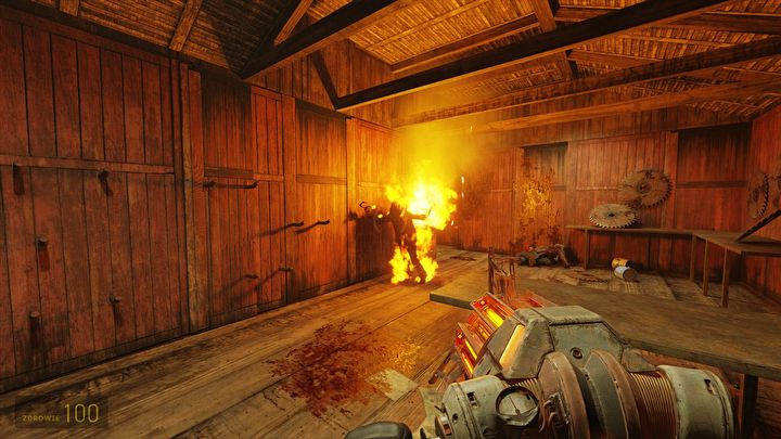 Dzięki ray tracingowi ogień tworzy ciekawe efekty świetlne.Źródło: Half-Life 2 RTX, Orbifold Studios, 2025.