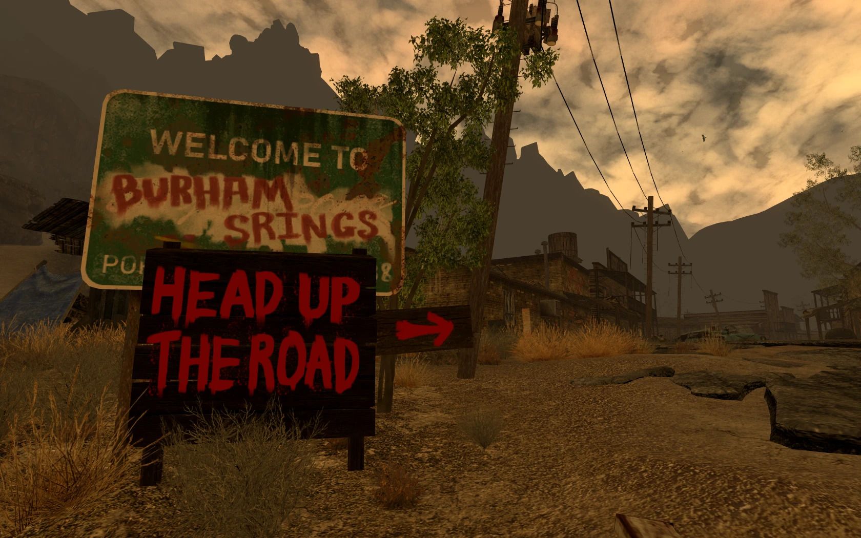 Jeśli chcecie sprawdzić omawiany mod i zagrać w „ożywionego” Fallouta 3 z 2003 roku, musicie posiadać kopię New Vegas wraz ze wszystkimi dodatkami. Poniżej znajdziecie kilka grafik, które ukazują miasteczko Burham Springs z Fallout: Revelation Blues.
