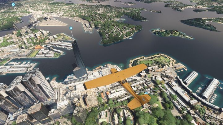 Microsoft Flight Simulator 2024 to jedna z najładniejszych gier na rynku, oferująca fotorealistyczny wygląd terenów na całej kuli ziemskiej. Ma też wręcz nieograniczony apetyt na moc procesora, karty graficznej i pamięci RAM, ale na wysokich detalach laptop z NVIDIA® GeForce RTX™ 4060 radzi sobie zaskakująco dobrze. Dużo też zależy od konkretnej sceny. Wybrałem więc coś pośrodku – lot nad ogromną metropolią Sydney, odtworzoną przy pomocy fotogrametrii z dodatkiem obiektów 3D. Do przetworzenia było więc dużo tekstur w wysokiej rozdzielczości i setki pokrytych nimi budynków, gęste chmury oraz woda – również w wysokich detalach.