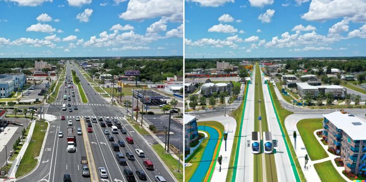 Warto dodać, że program może być stosowany nie tylko do przetwarzania pojedynczych miejsc, ale również całych odcinków dróg. Dla przykładu autor zlecił AI przeprojektowanie US-19, nazywanej „najbardziej śmiercionośną drogą w Ameryce”. Jako polecenie podał: „wielki bulwar w stylu Pól Elizejskich ze ścieżkami rowerowymi po obu stronach, nowoczesnym tramwajem w stylu europejskim i apartamentowcami o różnym przeznaczeniu”. Co zaskakujące algorytm nie tylko przygotował realistycznie wyglądający projekt, ale również zadbał o takie elementy jak połączenia między ścieżkami.