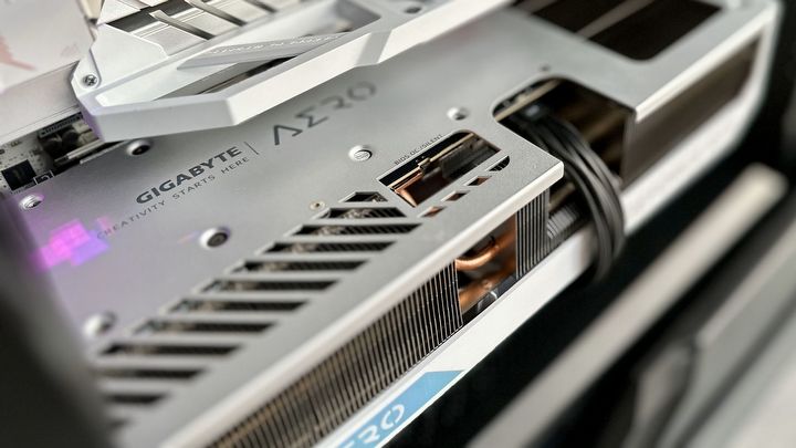 Niestety, jak to mawiają, z pustego to i Salomon nie naleje. Podobnie wygląda sytuacja w przypadku grania w takich najwyższych ustawieniach, jeżeli jednocześnie chcemy korzystać z wyższych rozdzielczości niż FHD. Dlatego też do testów wybrałem kartę graficzną Gigabyte GeForce RTX 4080 Super AERO OC 16 GB – model z masywnym, czteroslotowym chłodzeniem, trzema wielkimi wentylatorami i siedmioma opasłymi ciepłowodami. Dodatkowo urzekła mnie tutaj biała stylistyka karty, ale to już kwestia gustu – to, co istotne, to to, że ten olbrzym ma tak ogromny zapas mocy chłodzenia, że nawet pod pełnym obciążeniem jest ledwie słyszalny.