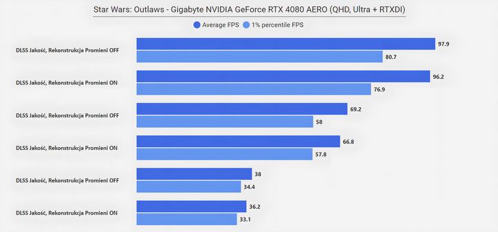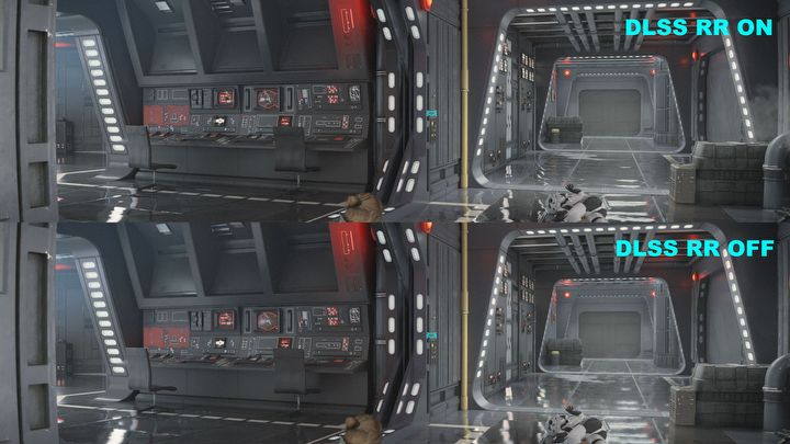 Nie jest to jeszcze technika wolna całkowicie od mankamentów - w przypadku Star Wars: Outlaws tracimy nieco na stabilności kontrastowych krawędzi w grze, ale tu realnie trzeba używać lupy i spowolnienia, aby dopatrzeć się problemu – ale bezwzględnie i znacząco poprawiająca jakość obrazu generowanego przez śledzenie promieni. Dlatego też kolejne testy DLSS przeprowadziłem z aktywnym DLSS Ray Reconstruction.