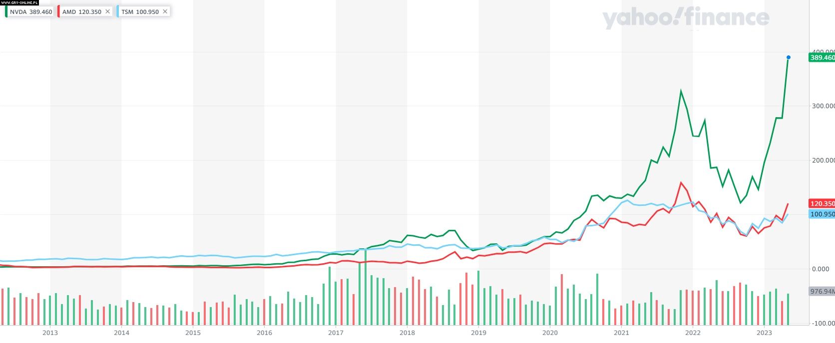 Należy przy tym zaznaczyć, że nie tylko Nvidia znacznie zyskała na rozwoju AI. Również inne firmy odpowiedzialne za produkcję układów graficznych, takie jak AMD lub TSMC, odnotowały wzrost cen swoich akcji.