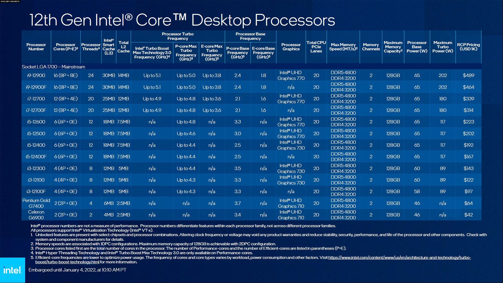 Procesor i9-12900 oferuje skok wydajności o 17% względem poprzednika (i9-11900) na przykładzie gry Hitman 3 (sparowany z RTX 3080). Średniopółkowy i5-12600 wypada zaś o 10-30% lepiej od Ryzena 7 5700G w zastosowaniach biurowych. Oprócz CPU zaprezentowano również nowe, tańsze płyty główne z gniazdem LGA 1700. Mowa o konstrukcjach H670, B660 oraz H610.