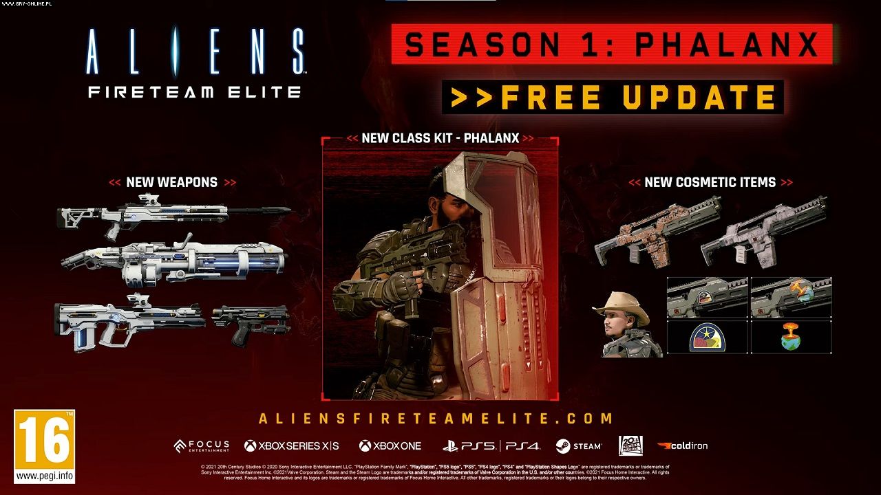 Aliens: Fireteam Elite to solidna strzelanka kooperacyjna, wydana niecały miesiąc temu na PC oraz konsole Xbox One, Xbox Series X|S, PlayStation 4 i PlayStation 5. Gra dzisiaj otrzymała darmową aktualizację 1. sezonu, rozszerzającą jej zawartość o nową klasę Phalanx, która wyposażona jest w masywną składaną tarczę. Zajmuje ona stale dłoń postaci, co zmusza graczy do korzystania z broni jednoręcznej.