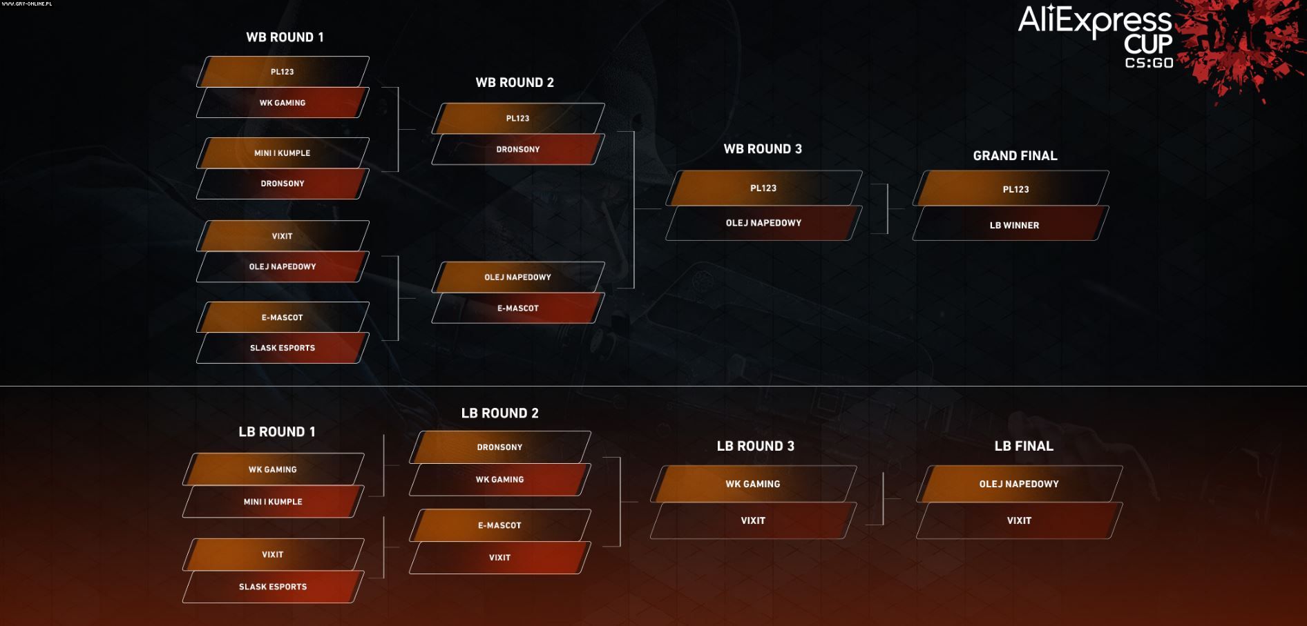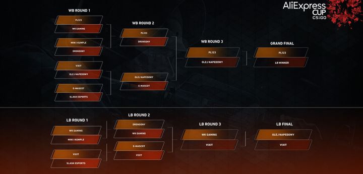 Pierwszy w historii platformy AliExpress turniej gamingowy – AliExpress Cup | CS:GO – powoli dobiega końca! Przed nami dwa ostatnie dni rozgrywek, podczas których najlepsze drużyny powalczą o nagrody rzeczowe i pieniężne. W Wielkim Finale znalazła się drużyna PL123 z Mateuszem „Bożydarem” Jaworskim na czele, która zagwarantowała sobie udział w nim pokonując w poprzedniej rundzie Olej Napędowy 2:0. Teraz w dolnej drabince ekipa Oleju Napędowego zmierzy się z Vixit i jeszcze raz powalczy o udział w finale. Pamiętajcie, że transmisje z ostatnich faz rozgrywek będziecie mogli oglądać 1 oraz 2 kwietnia od godz. 19:00 na naszym kanale Twitch, a finał dodatkowo na live.aliexpress.com. Wpadnijcie kibicować swoim ulubionym drużynom!