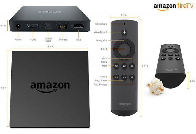 Podzespoły ważącego niespełna 300 gramów Fire TV zostały zamknięte w mieszczącej się w dłoni małej czarnej skrzynce. Sprzęt posiada czterordzeniowy procesor Qualcomm Krait 300 1,72 Ghz, dedykowany układ graficzny Qualcomm Adreno 320 oraz 2GB pamięci RAM, co stawia go na równi z wieloma współczesnymi smarftonami. Z tyłu obudowy znalazło się wyjście USB, Ethernet, HDMI oraz optyczne audio. Podstawowym kontrolerem jest wielofunkcyjny pilot z wbudowanym mikrofonem, który pozwala na używanie komend głosowych. Opcjonalnie można skorzystać z dedykowanego pada kosztującego 39,99 dolarów, którego zdjęcia wyciekły do sieci jakiś czas temu.