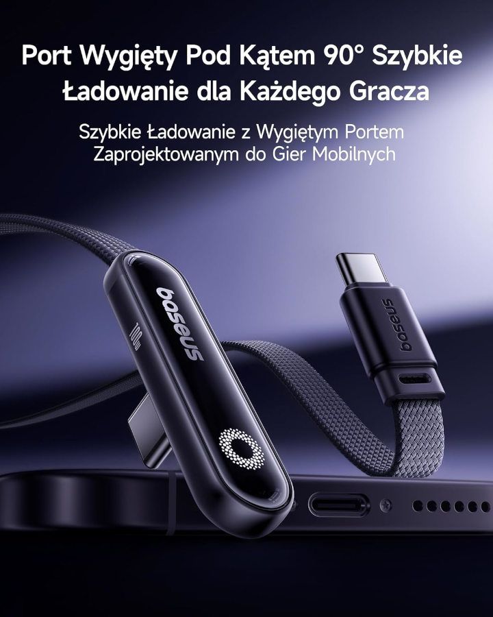 Baseus USB C - superwydajny i innowacyjny ultrakabel. Odkąd wypróbowałem kabel Baseus USB C pod kątem 90°, moje wrażenia z gry, pracy i rozrywki zmieniły się dramatycznie! Jako entuzjasta gier szukałem kabla, który nie tylko szybko ładowałby moje urządzenia, ale byłby również praktyczny, trwały i idealnie pasował do mojej stacji roboczej! Cóż, ten kabel przekroczył wszystkie moje oczekiwania!