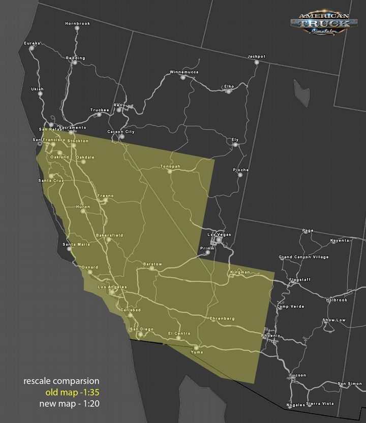 Czeska firma SCS Software na swoim oficjalnym blogu zdradziła dalsze plany dotyczące gry American Truck Simulator. Deweloperzy pracują obecnie nad darmową aktualizacją, która przeskaluje mapę świata. Pierwotna proporcja 1:35 zostanie zastąpiona wskaźnikiem 1:20 – tym samym co w Euro Truck Simulator 2.