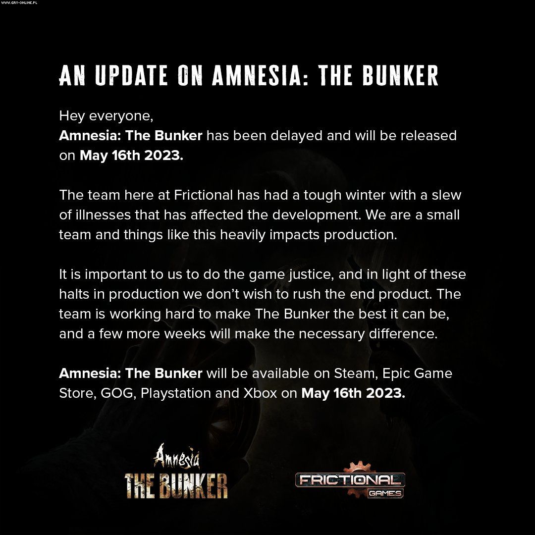 Dlatego też studio Frictional Games postanowiło przesunąć debiut gry Amnesia: The Bunker o dwa miesiące, by spokojnie dokończyć produkcję (czytaj: uniknąć pośpiesznego wydania niedopracowanego tytułu pełnego błędów).