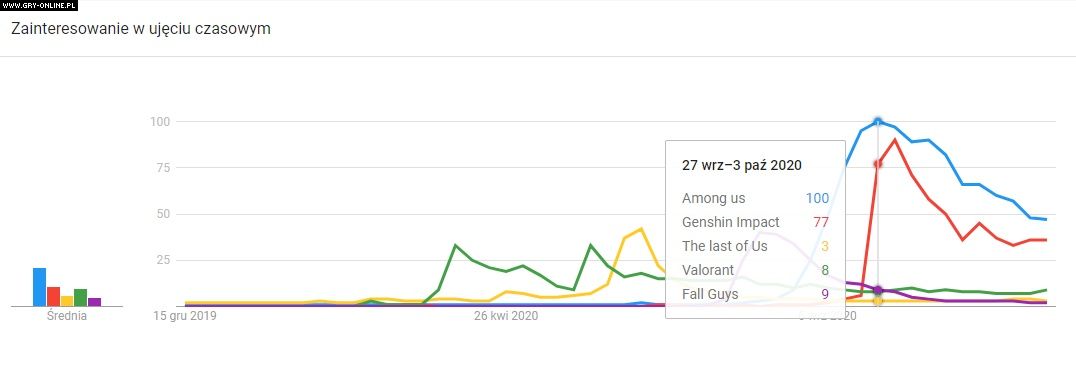 Według wykresów Google Trends, tytuł Among Us jest w tym roku najczęściej wyszukiwaną frazą w wyszukiwarce. Gra zadebiutowała w 2018 roku, ale dopiero niedawno zyskała tak dużą popularność.