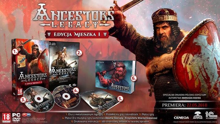 Oprócz tego wraz z premierowym wydaniem gry otrzymacie standardową zawartość edycji limitowanej: płytę ze ścieżką dźwiękową, etui z metalizowanym logo Ancestors Legacy, instrukcję oraz 48-stronicowy zbiór grafik z gry. Jeśli jednak zakupicie Edycję Mieszka I w sklepach z sieci Saturn lub Media Markt, w pudełku znajdziecie również monetę, wzorowaną na denarach z czasów pierwszego historycznego władcy Polski. Sama gra będzie dostępna w polskiej wersji językowej (napisy).