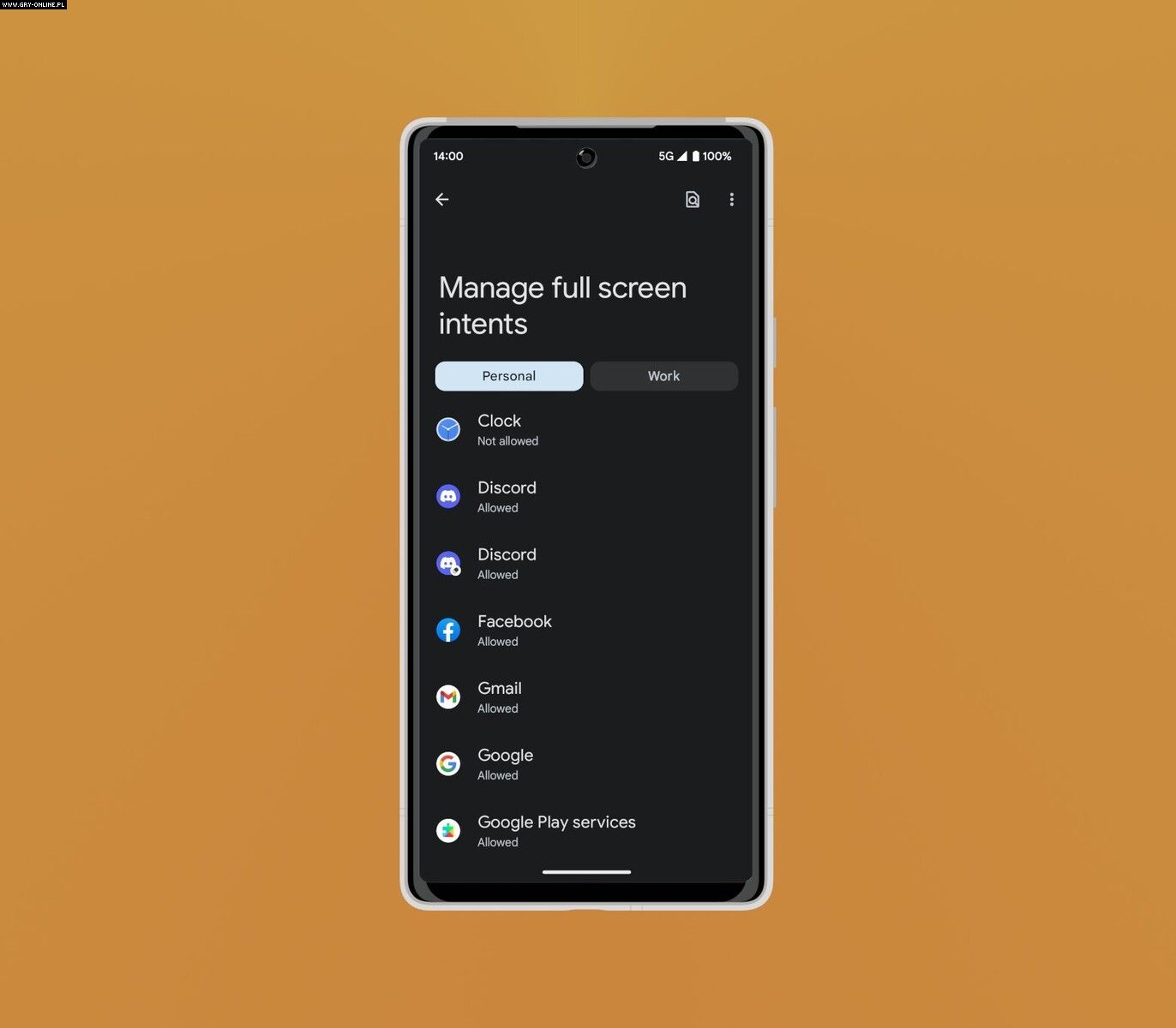 Nadchodzący system Android 14 ma wprowadzić możliwość zablokowania wyświetlania się powiadomień pełnoekranowych.