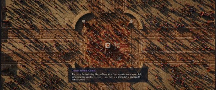 Po odebraniu nagrody możecie zauważyć, że przestaliście nagle otrzymywać zadania fabularne. Wbrew pozorom i mimo braku napisów końcowych kampania fabularna właśnie dobiegła bowiem końca – wojna z Voadą była ostatnim wyzwaniem na waszej drodze, a triumf był konkluzją historii. Gra nie posiada aktu trzeciego, a po ukończeniu aktu drugiego kampania natychmiast zmienia się w tryb sandboxowy. Oznacza to również, że nie doświadczycie zawiązania wątków otwartych w pierwszym akcie kampanii, takich jak losy rodziny poprzedniego, zmarłego cesarza. Fabuła dobiegła końca, a wam pozostaje tylko kontynuowanie pliku zapisu wedle waszej woli i wykonywanie pobocznych zadań dla innych przywódców lub rozpoczęcie gry od nowa w pełnoprawnym trybie wolnej rozgrywki.