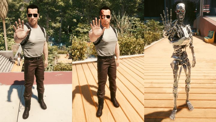 Oczywiście CD Projekt RED nie posiada praw autorskich do Terminatora, więc modele nie przypominają tych z filmu. Nie uszło to uwadze fanów, którzy postanowili stworzyć mod pozwalający grać postacią w większym stopniu odzwierciedlającą tę wykreowaną przez Arnolda Schwarzeneggera.