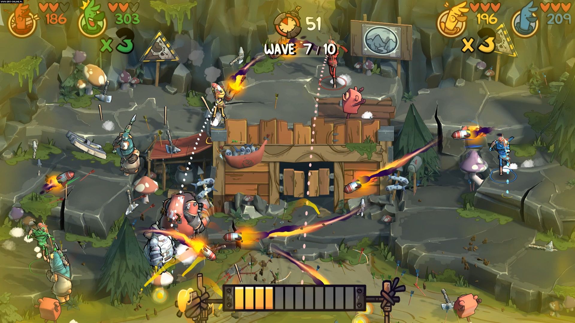 W trybie kooperacyjnym łucznicy zmierzą się z hordami niedźwiedzi uzbrojonych w topory, armaty oraz karabiny. Gra pozwoli na zabawę przez sieć lub oraz lokalnie na jednym ekranie. Zwycięstwa nagradzane mają być ziarnami pełniącymi rolę waluty, za którą odblokujemy nowe stroje, łuki oraz specjalne strzały.