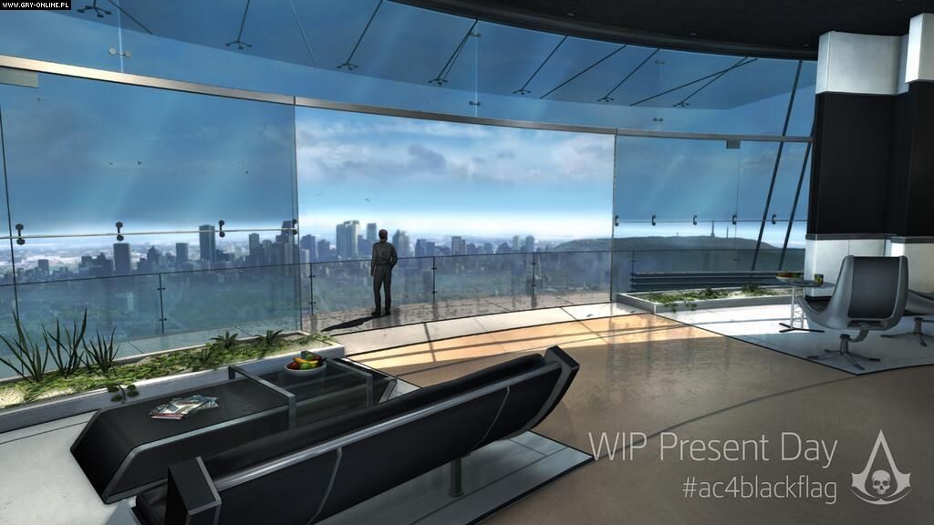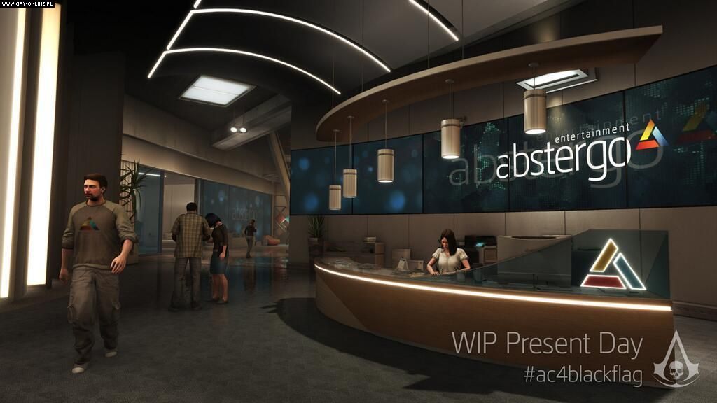 Twórcy przygotowali futurystyczne wnętrza biurowca korporacji Abstergo, kontrolowanej przez Templariuszy. Co ciekawe, mamy tutaj do czynienia z oddziałem spółki odpowiadającym za rozrywkę i media. Nazwa Abstergo Entertainement pojawia się też w wielu miejscach w trybie multiplayer. Czy oznacza to więc, że historia przedstawiona w czwartej części będzie w jakiś sposób związana z próbą komercjalizacji Animusa i zamienienia go w wirtualną platformę do grania? Niestety na razie nie znamy odpowiedzi na to pytanie. Deweloperzy nie zdradzili też jak duże znacznie będą miały fragmenty tytułu umieszczone we współczesnym świecie, ani kto konkretnie będzie ich bohaterem/bohaterami.