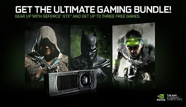 Nabywcy najnowszych modeli kart grafiki firmy Nvidia otrzymają w prezencie gry Assassin’s Creed IV: Black Flag, Splinter Cell: Blacklist oraz Batman: Arkham Origins. Akcja ruszy od 28 października w wybranych punktach handlowych.