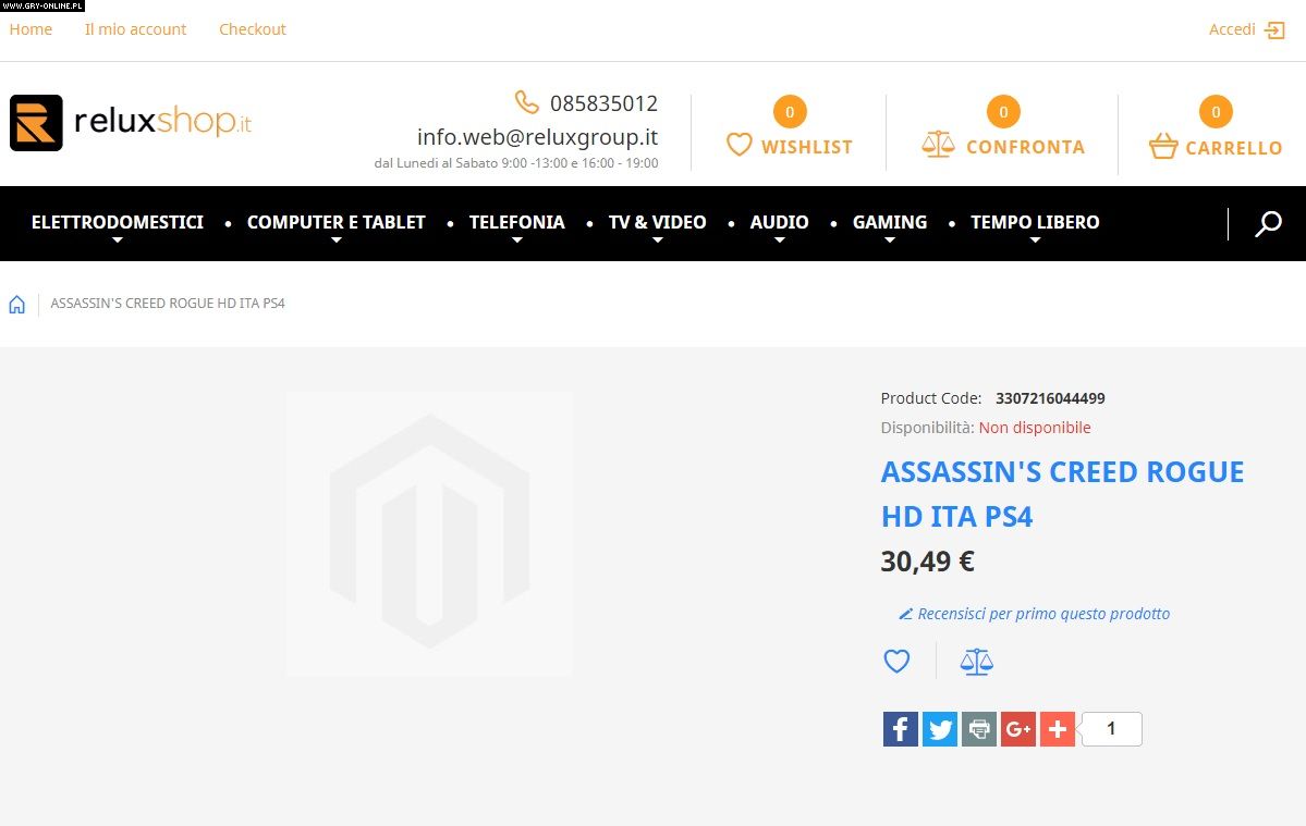 W ofercie kilku włoskich sklepów pojawiła się gra Assassin's Creed: Rogue HD na konsole PlayStation 4 oraz Xbox One.