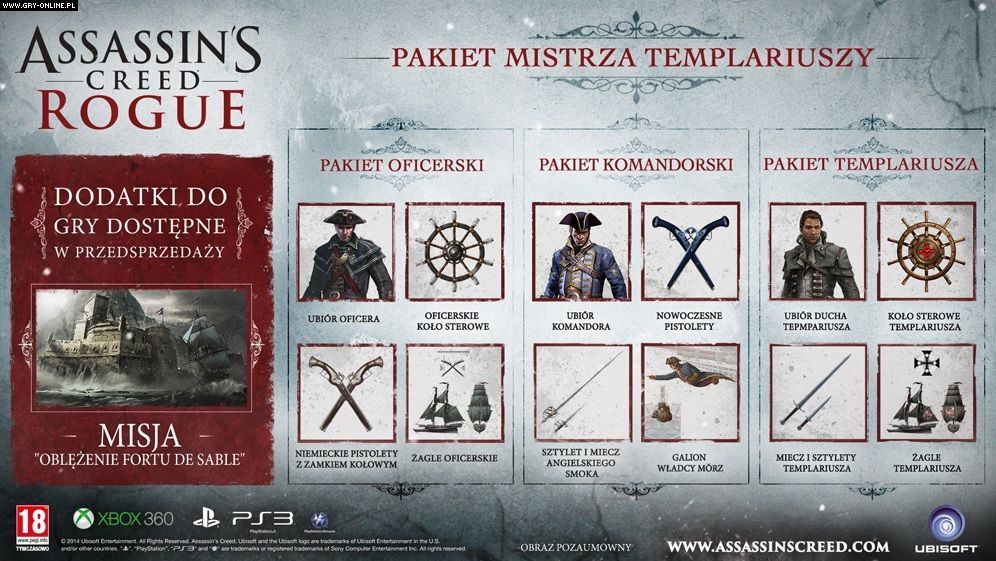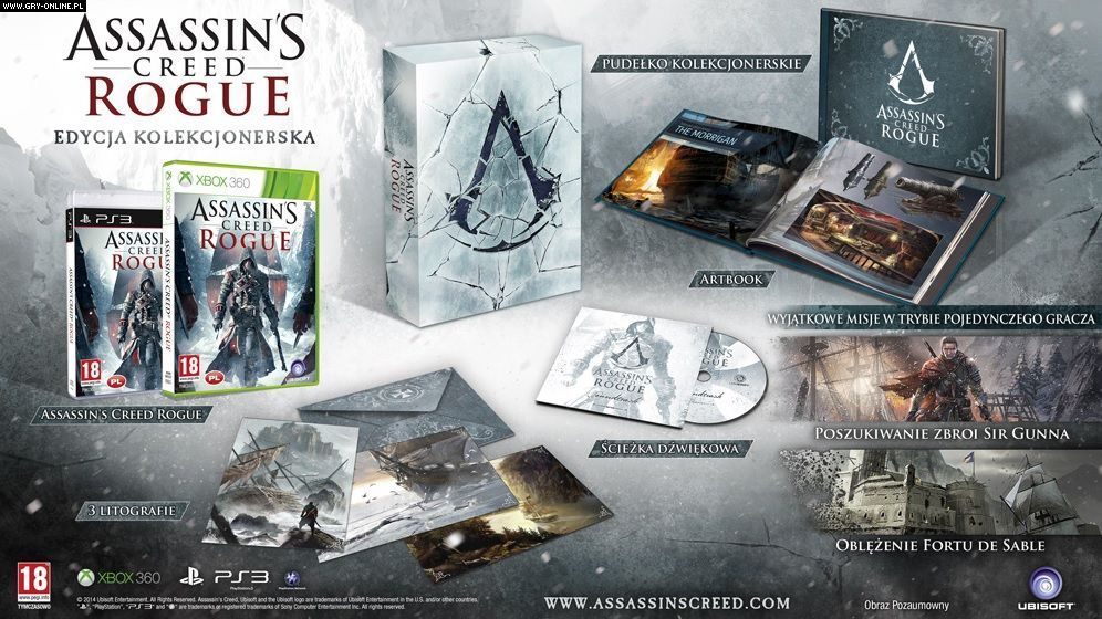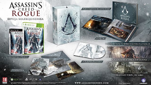 Firma Ubisoft rozpoczęła przedsprzedaż gry Assassin's Creed: Rogue na konsole PlayStation 3 i Xbox 360. Tytuł, oprócz standardowego wydania, doczeka się także edycji kolekcjonerskiej, w cenie 279,90 zł. Zawierać ona będzie artbook, specjalne pudełko, dwie dodatkowe misje, ścieżkę dźwiękową oraz trzy litografie.