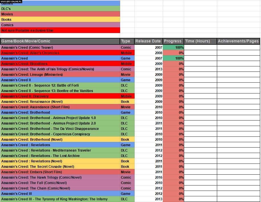 Popularne marki potrafią rozrastać się do niebotycznych rozmiarów i nawet najbardziej zagorzali fani mogą mieć problem z zapamiętaniem wszystkich produkcji sygnowanych logo swojej ulubionej serii. Być może dlatego pewien miłośnik Assassin’s Creed przygotowuje ogromną listę wszystkich gier, książek, komiksów itd. z tego uniwersum.